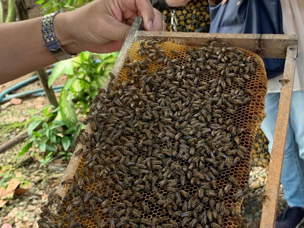最後にハチミツ工場に。これまた一番なので、雨の日には難しいらしい、巣を見せてもらい、1人ずつ写真を撮ってもらえました。他の方が来るまで、ゆっくり美味しいハニージュースをたっぷりとのんでフルーツ食べてのんびりと。念願のジャックフルーツもあってルンルンでした。最後に伝統の音楽を聴いて、ツアーは終了!!