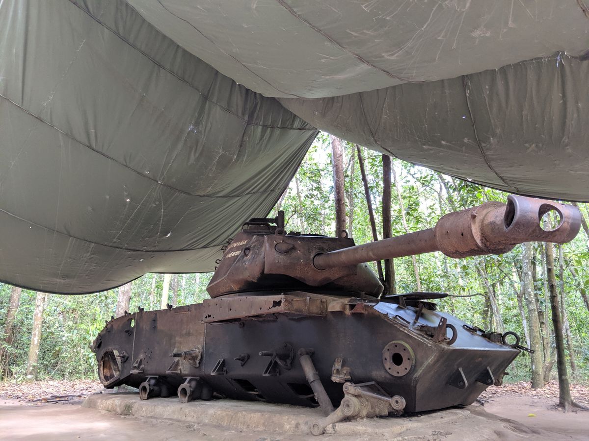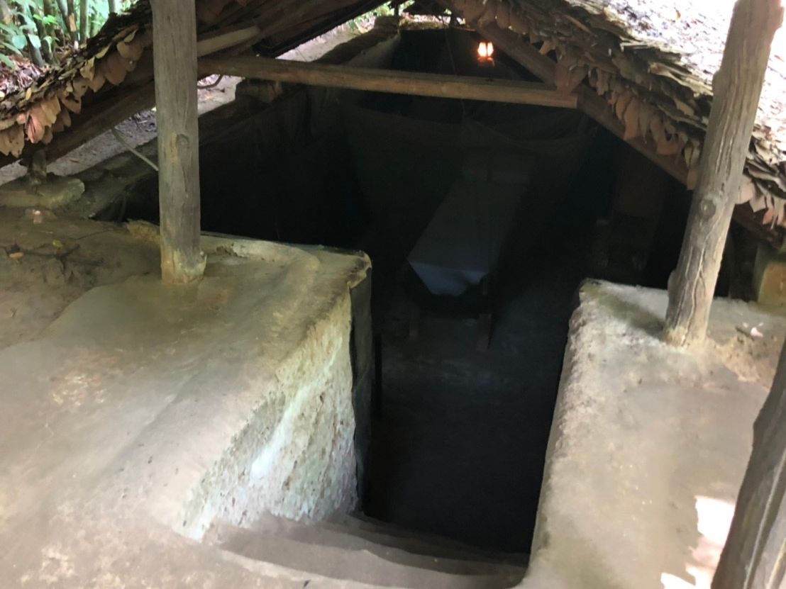 ゲートを入ってすぐにべトナム戦争のビデオを見せられるのですが、日本人向けはベトナム人が作ったのに対し米国人向けは米国人が作ったとのことで内容も違うそうです。トンネルは観光用に広げたそうですがそれでも狭く、中腰で歩くのは非常にきつかったです。