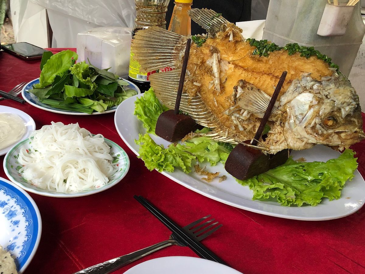 昼食のベトナム料理がお口合ったようで安心致しました。エレファントイヤーフィッシュはミトーの名物料理となっております。