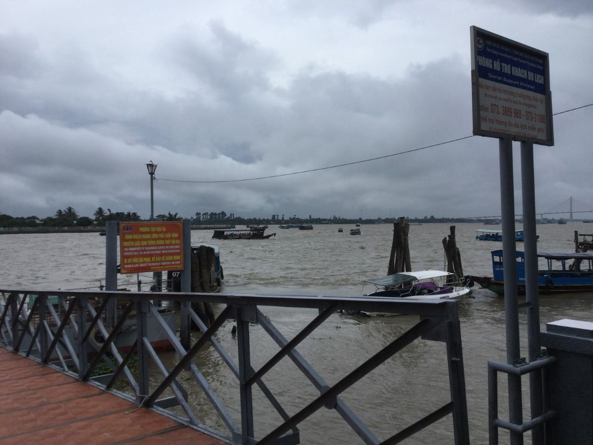 渡し場に到着した時には雨は止んでいました。土砂降りのまま風も吹いていたままでメコン川を渡ることになっていたら、ちょっとした覚悟が必要だったたかもしれません。メコン側は上流から肥沃な栄養分を含んだ土は流れてくるので1年中泥流だそうで雄大さを感じました。