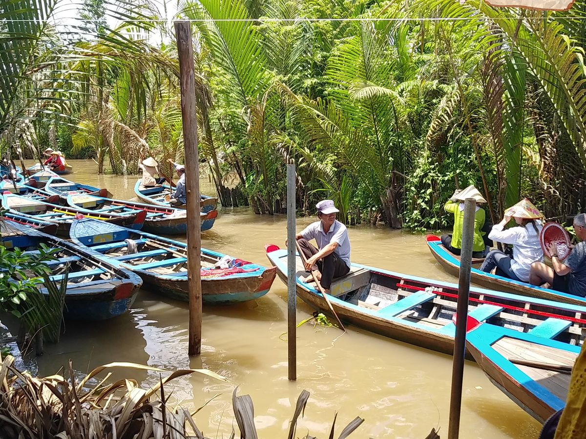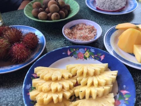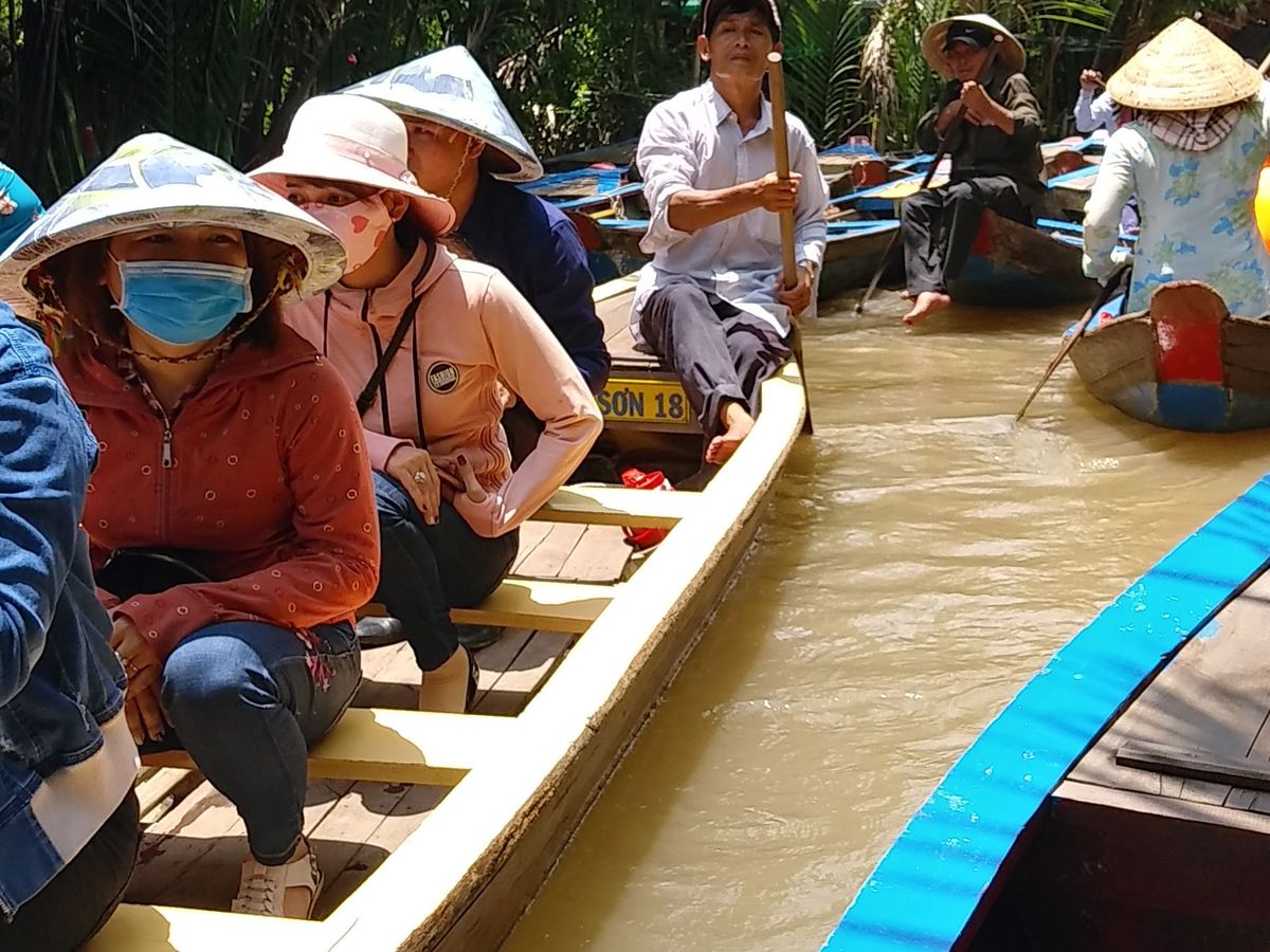 このツアーは英語、ベトナム語混雑ツアーで日本語ツアーには日本語ガイドさんがついてくださいました。とても気さくで経験豊富なベトナム人ガイドさんでした。食事も他の混雑ツアーの人らとは違うメニューになっていて、私たちが食べた象耳魚はインパクト抜群です!美味しかったです。色々な果物の木も見られ、手漕ぎの舟に乗り、満喫な1日でした。