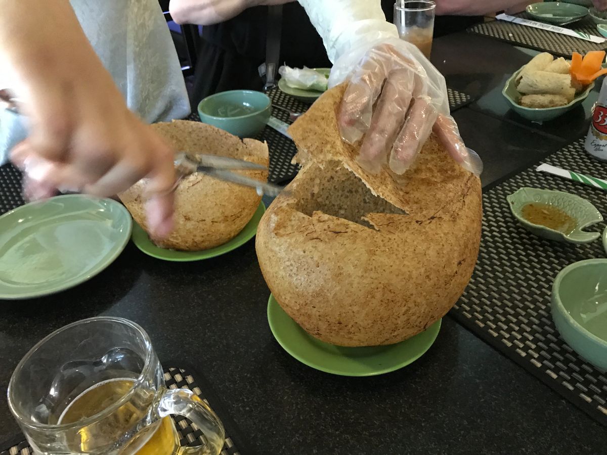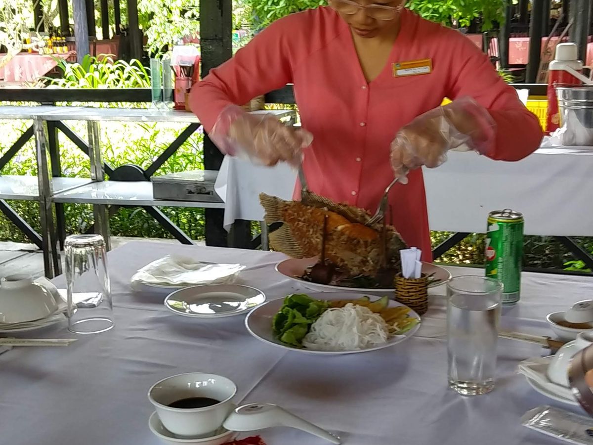 昼食のベトナム料理がお口合ったようで安心致しました。エレファントイヤーフィッシュはミトーの名物料理となっております。