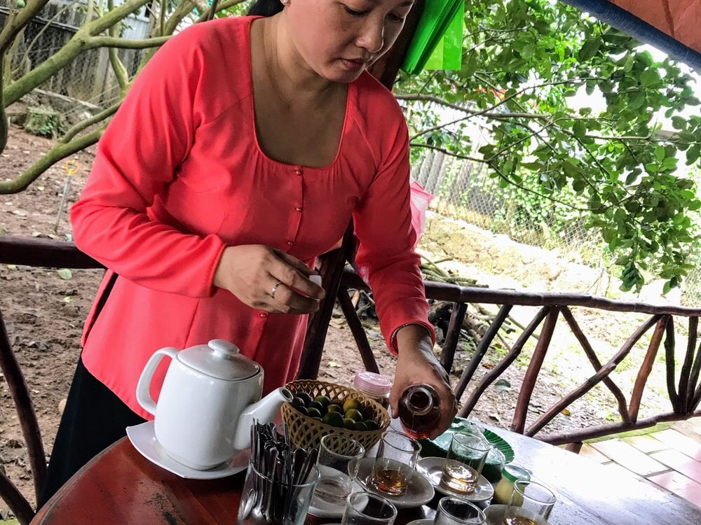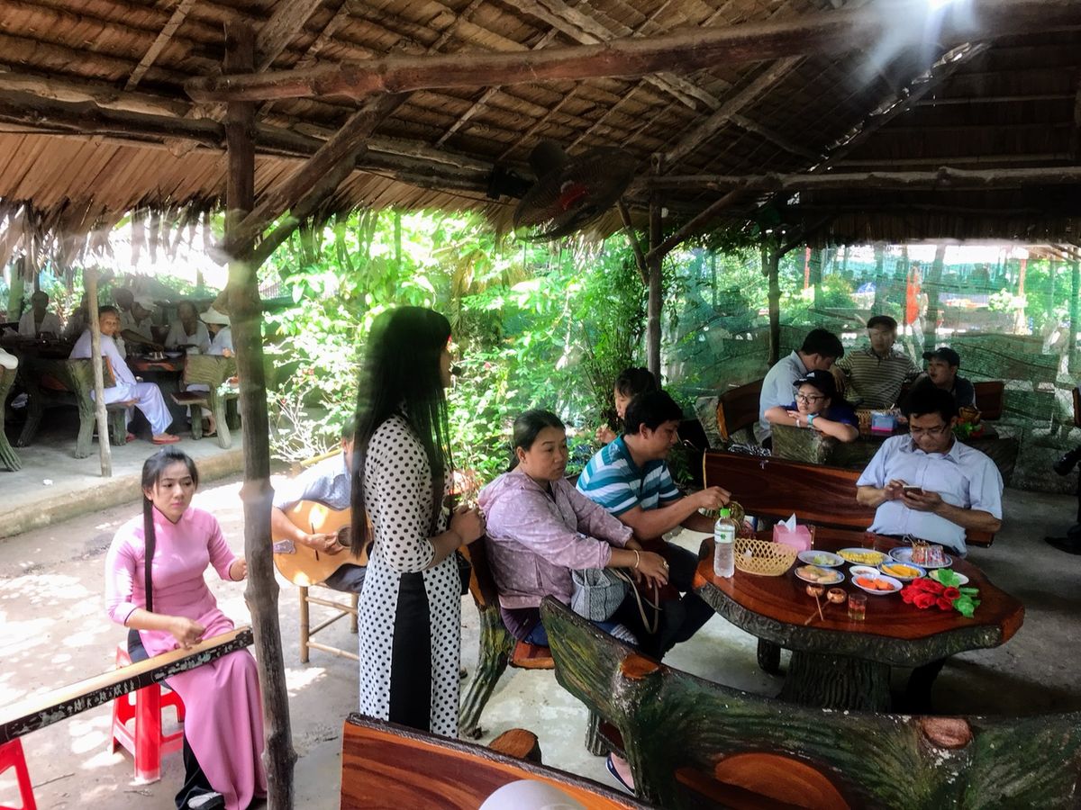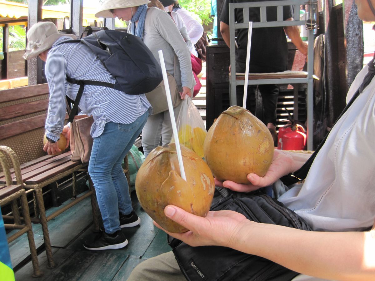 メコン川では船だけでは無く、フルーツのサービスやヘビとの写真撮影やハチミツお茶の試食なども付いていて充実でした。トイレ休憩も色々な場所であり、高齢の母も心配なく参加できました。メコン川から1度ホテルに戻り