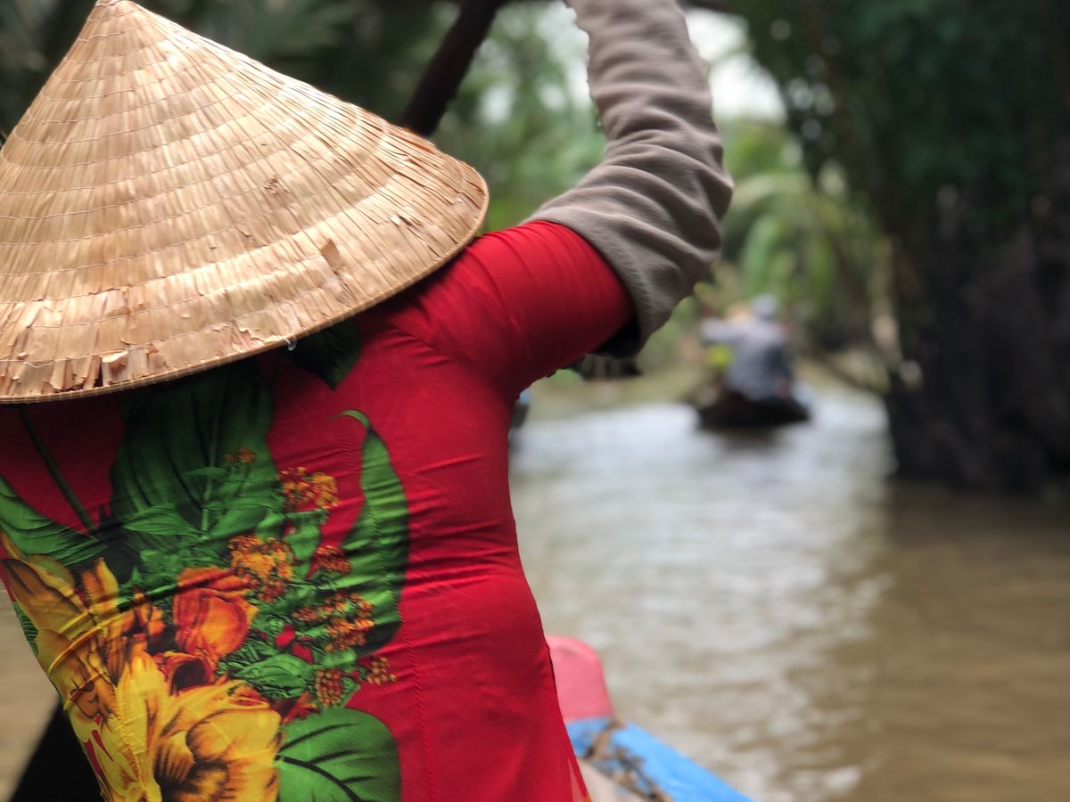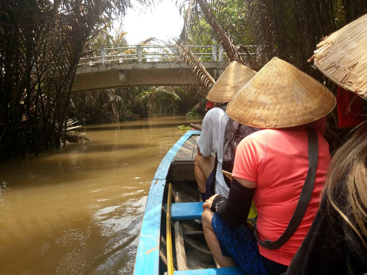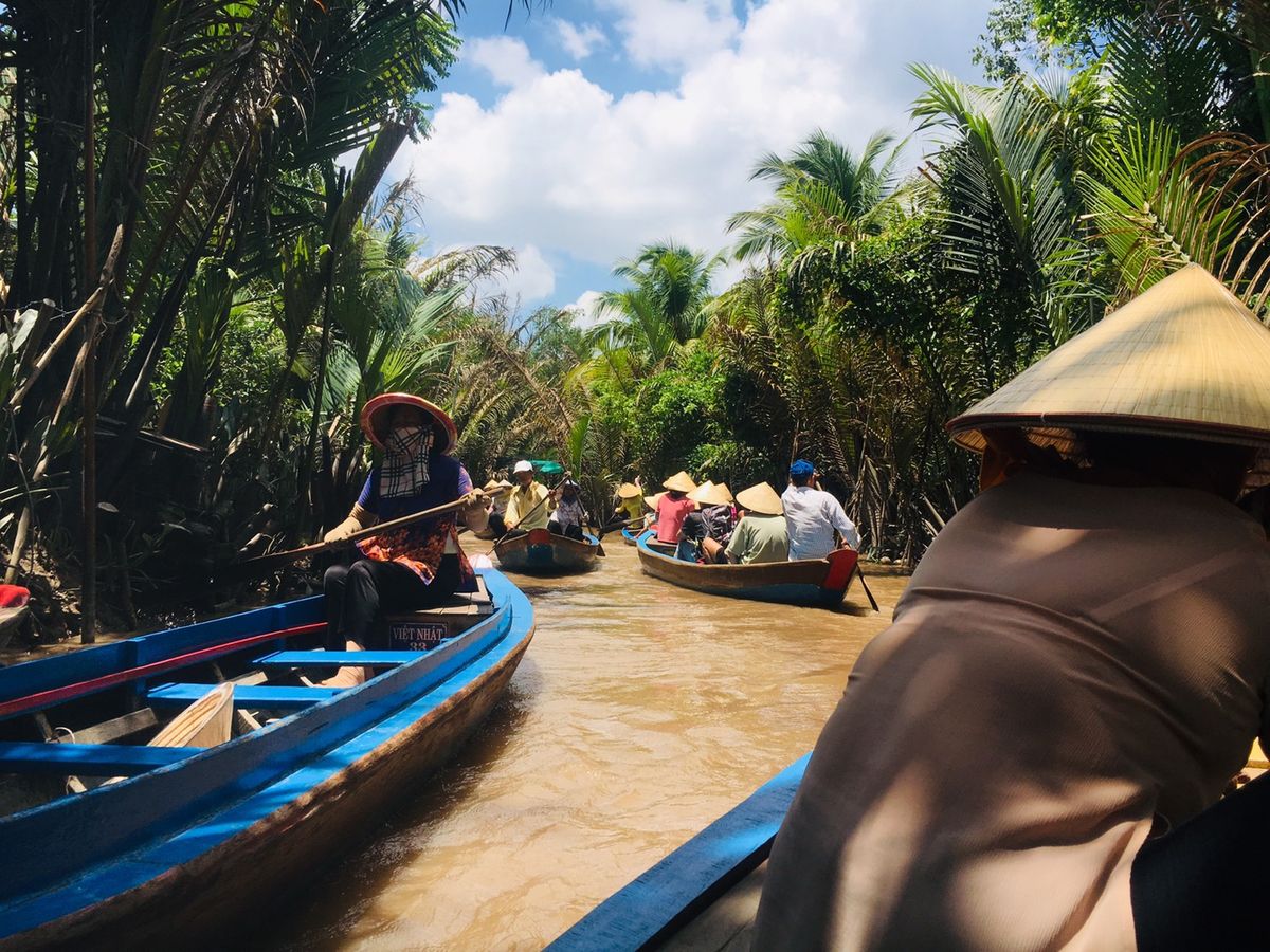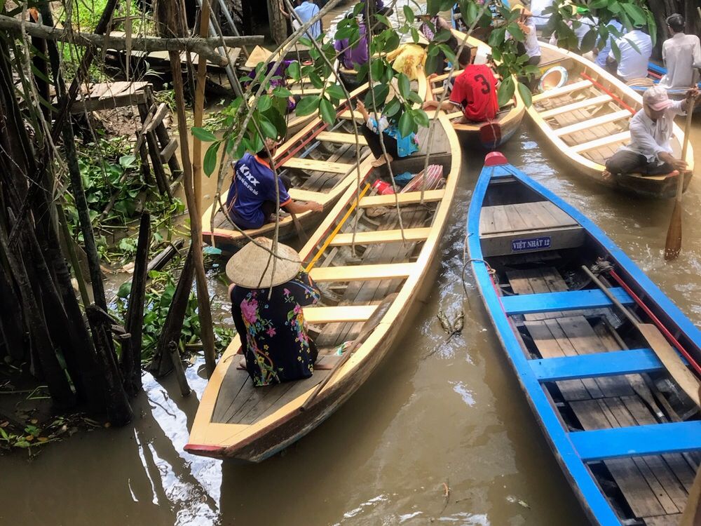 初めに訪れた、メコン川デルタクルーズ、波が結構あって揺れたけどどうにか島に着き南国感満載。島民の方はとても暖かく日本語が分からなくてもニコニコ対応してくれました。果物は美味しくココナッツジュースも乾いた喉に心地よかった。大蛇はちょっと怖かったけど…勇気ある方は首に巻いていました。手漕ぎボートの船頭さん!上手なのはわかっていたけど!周りのボートを何船も追い抜いて行きました。