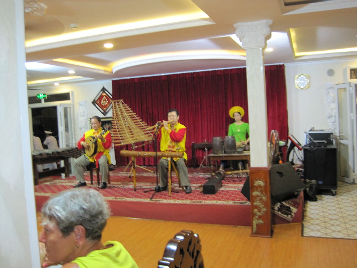 最後はサイゴン川クルーズ、料理も美味しく音楽や踊りも楽しかったです。音楽は私たちも知っている「ホタルノヒカリ」でした。