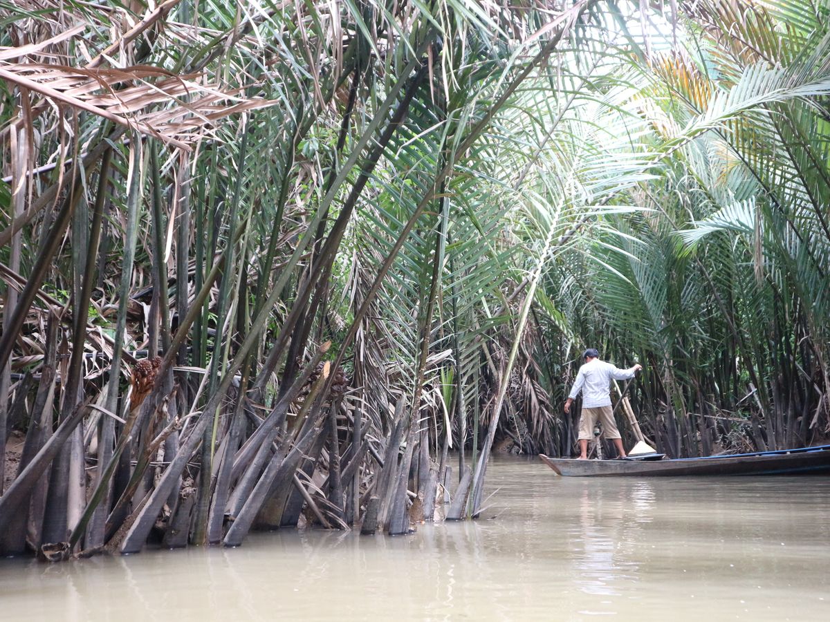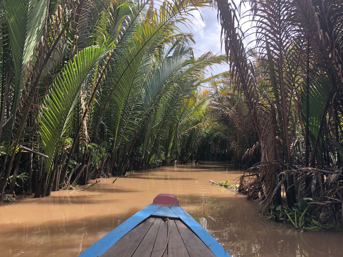 メコン川クルーズはとても混みあっていてアトラクションに乗るように流れ作業でメコン川を覆うヤシの木を切ってしまっているらしく密林という感じはしませんでした。