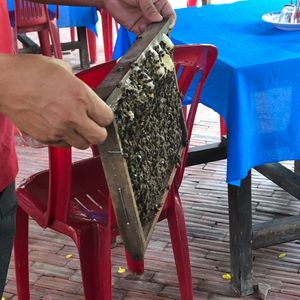 メコン川では対岸の島まで木造船で移動し、キャラメル工場、ハチミツ工場へ案内してもらい、現地の歌等でお出迎えして頂きました。手漕ぎボートでは日除けの傘(帽子)を貸してくれ、数キロの距離を下ります。帰りの木造船ではココナッツジュースのサービスがありました。