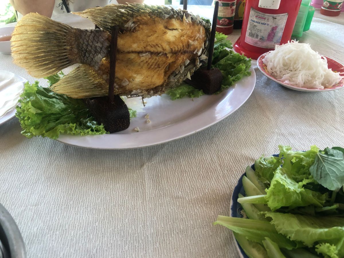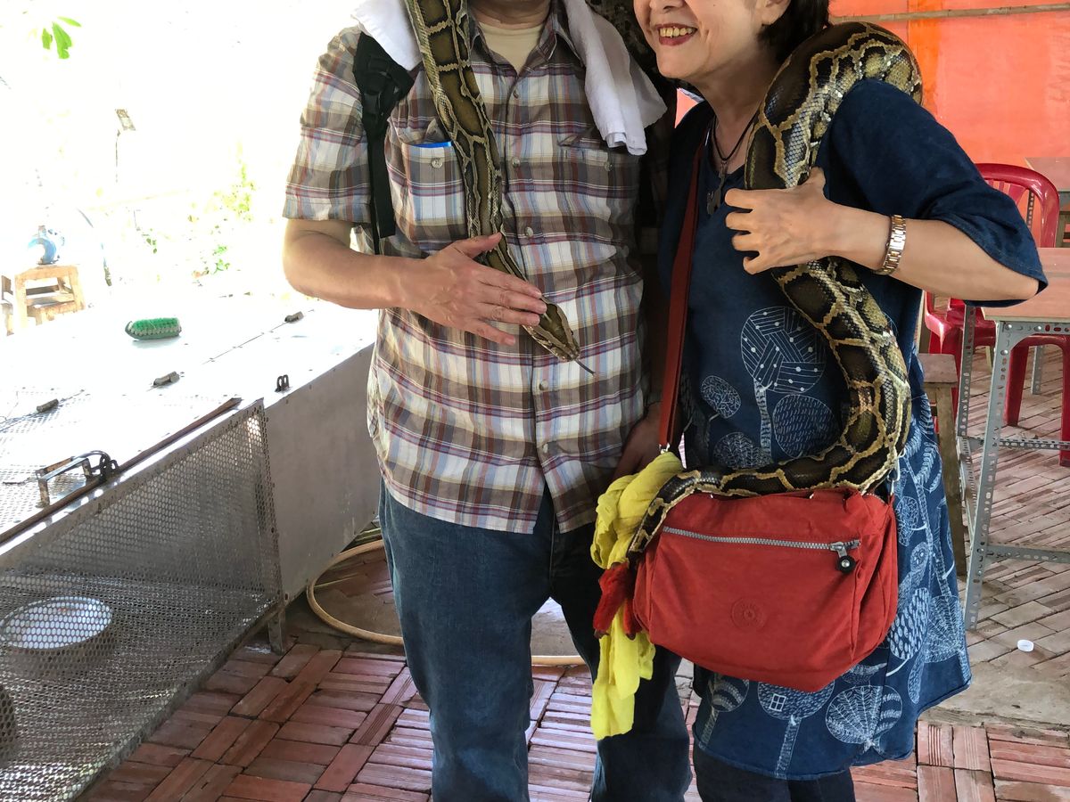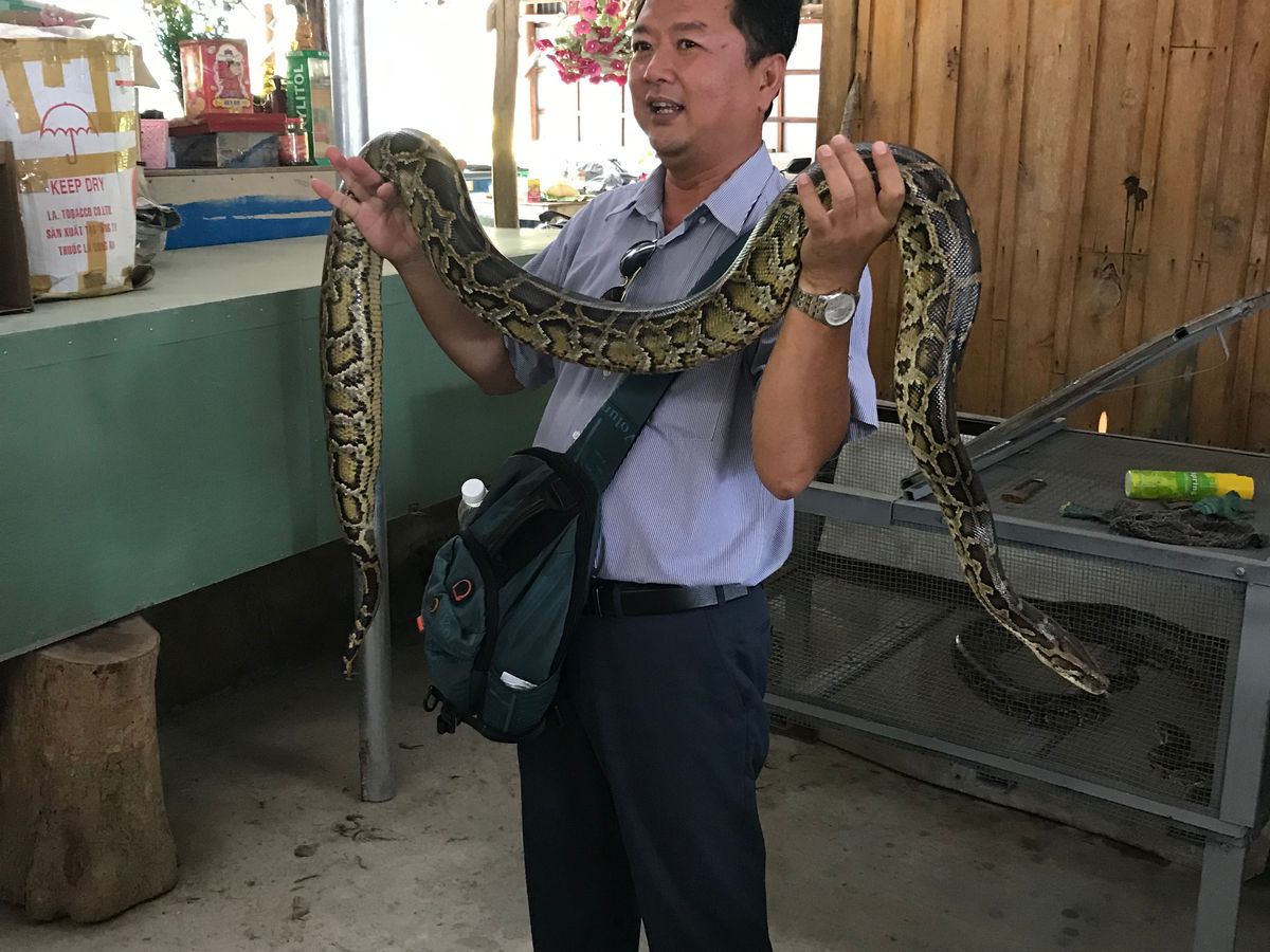 ホーチミンに着いて最初のオプション体験でした。朝に迎えに来ていただいて通勤のバイクの多さに驚き、人々の暮らしぶりや街並みを観ながらバスで移動。メコン川デルタクルーズでは蜂の巣箱を持ったり ヘビを首に巻いたり(これは一生に一度やりたかったので夢が叶って最高!)舟に乗って景色も満喫できました。昼食も口コミを見てあまり期待していませんでしたが どれも美味しくて特に エレファントフィッシュをほぐして春巻きにしたのが絶品でした。