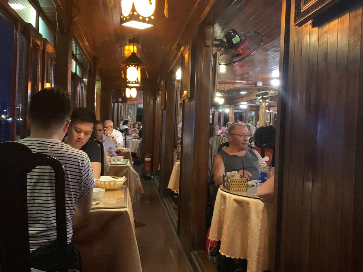 夕方は水上人形劇、これは前から2番目の席で良く見れて内容も、楽しい音楽と人形のコミカルな動きでベトナム語がわからなくても凄く楽しめました。夜のディナークルーズも料理が美味しくて最高でした。余計なことですがこんなに素敵な思いをしてこの料金で本当にいーのかなと心配になるくらい超超最高な1日でした!