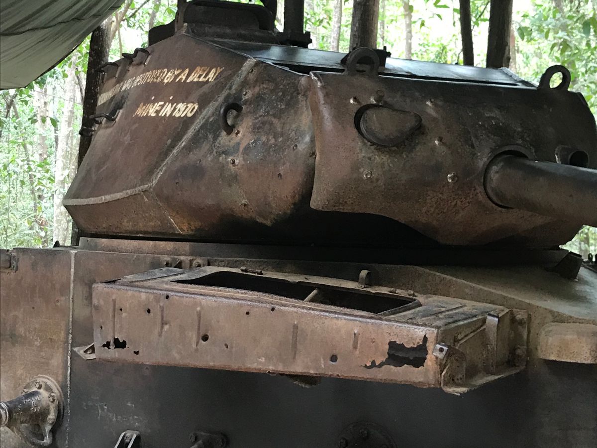 私自身は、クチが四回目でミトーが2回目のため、ただ銃を撃ちに行きたかっただけなのですが、友達を連れて行ったので、両方回るツアーを予約しました。クチは戦車のあるほうに行きました。日本のツアーで行くと戦車の上は危ないので乗らないでくださいとか銃は危ないので撃たないでくださいとか言われるので、いちいち制約が入るのでむかつくのですが、こちらのツアーは、結構時間も余裕をみて回れるのでとてもいいと思います。ミトーは、午後行くと商売けが抜けてて強引に売られないので、悪くなかったです。午前中に行くと誰か買わないと次に行けなかったりするので、金払わないと島から帰れない感じです。ミトーは、個人や英語ツアーで行くとチップを請求されるので、やなので、このツアーにしてよかったです。ちなみに、今現在カービンが10発550000ドンです。