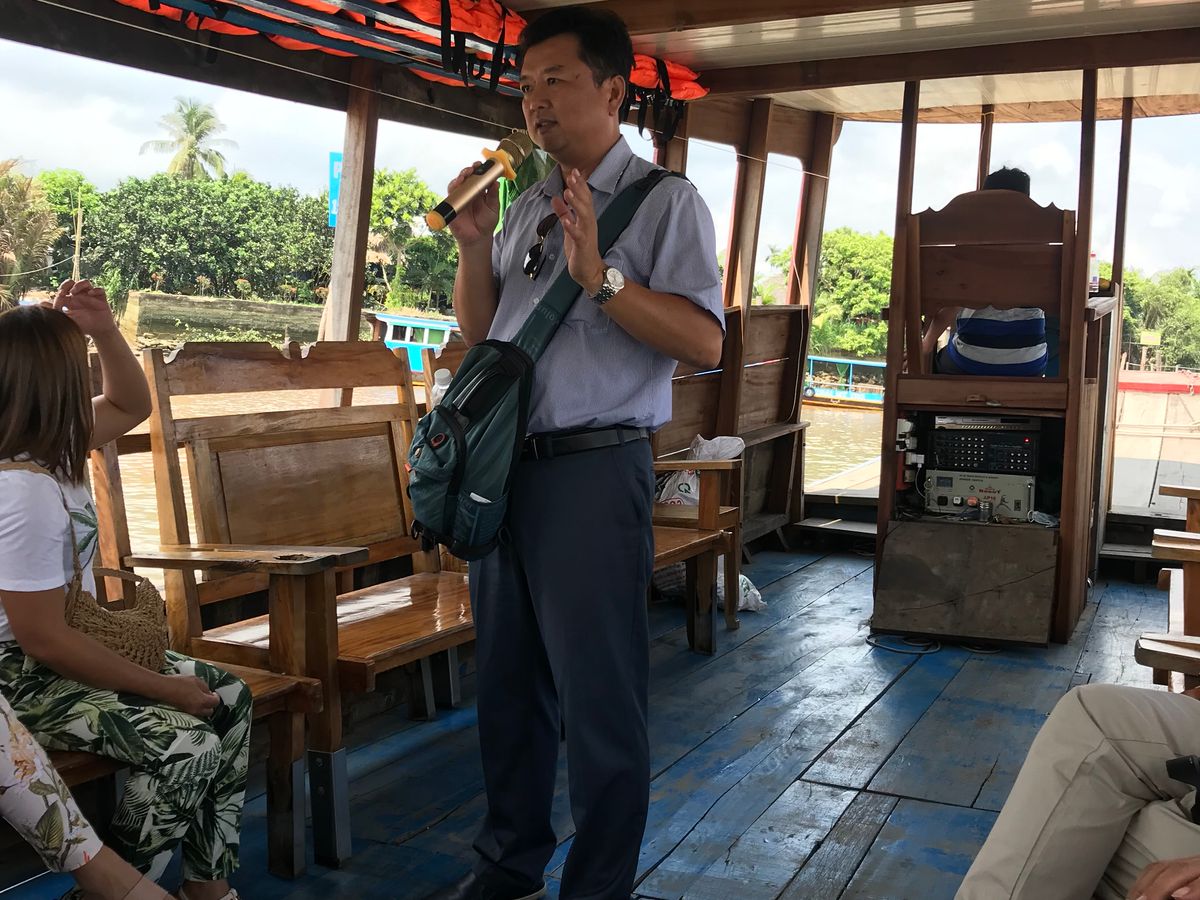 とても感じの良いガイドさんで、きちんと案内もしてくださいました。メコン川を小舟に乗って下る時に手を対向する船に挟まれないよう、手の置き場について何度も説明してくれました。船頭さんへのチップも前もって必要ない事を聞いていたので、自然とスルーできました。