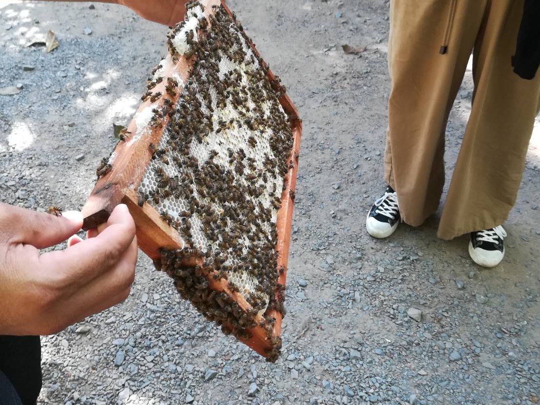 バス移動、船、はちみつ、ヘビ、ココナッツ作業場、フルーツ、昼食と一連の流れがシステム化されていました。