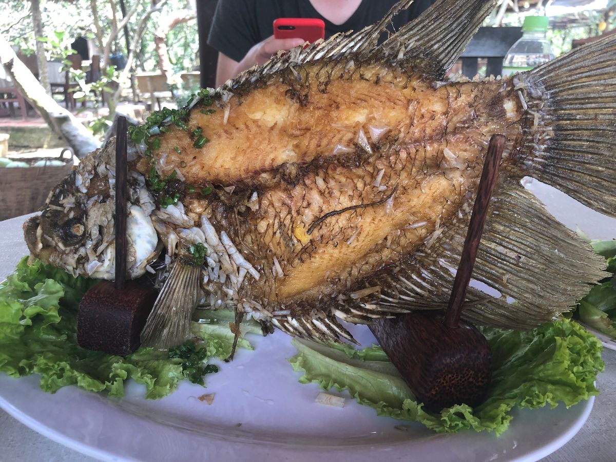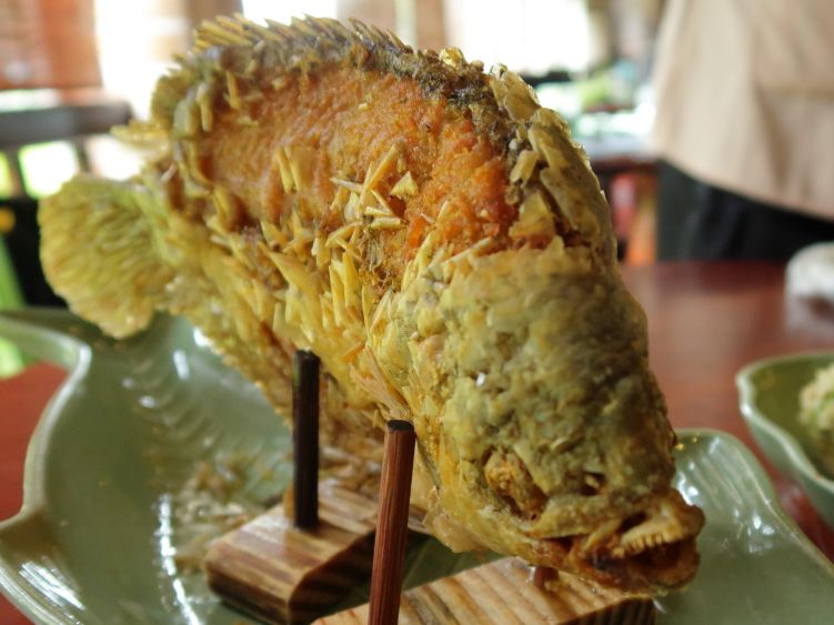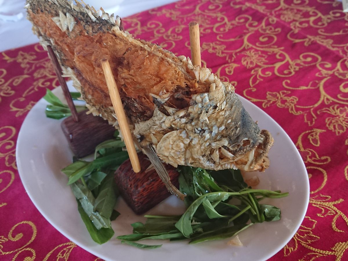 クチトンネルでは、日本語のベトナム戦争当時の説明ビデオを見た後に、トンネルに実際に入ったり、落とし穴等の仕掛けを見学したり、ライスペーパー作成の実演を見たり、硬軟交えたもので、大変興味深かったです。その後、ランチでは象耳魚を含むコースをいただきました。こういうツアーに含まれるランチとしては、まずまず口にあうランチでした。