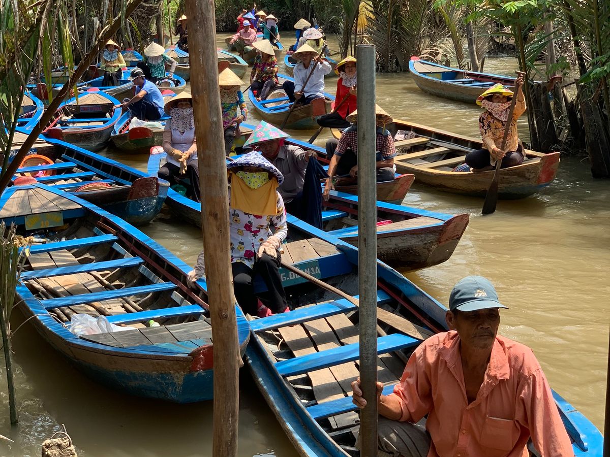 メコン川クルーズはクルーズのイメージとはかけ離れていますが、遊園地のアトラクションみたいで楽しいです。