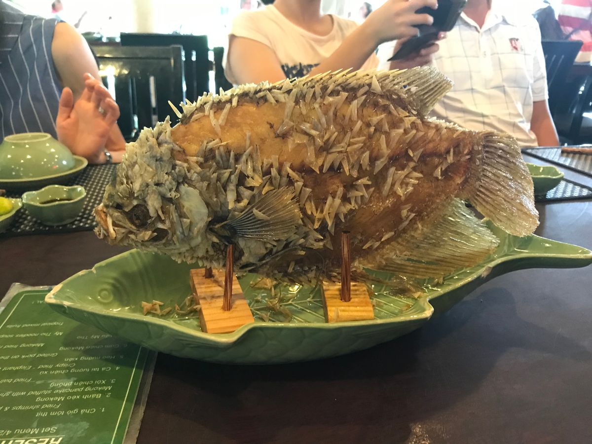 食事は象耳魚の生春巻きや、フォーはとても美味しかったけど、チャーハンは味がなく他のツアー客とも無味無臭ダネと意見が合う程でした。個別会計で注文の飲み物は、マンゴースムージーを注文。帰国した今も忘れられない程の美味しさです!