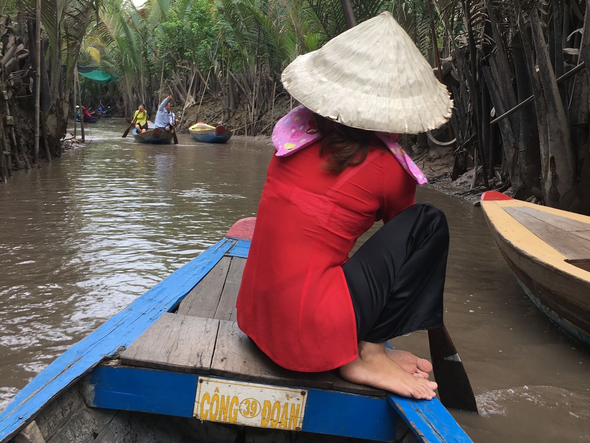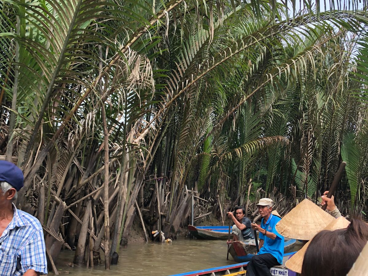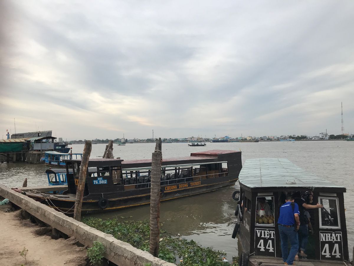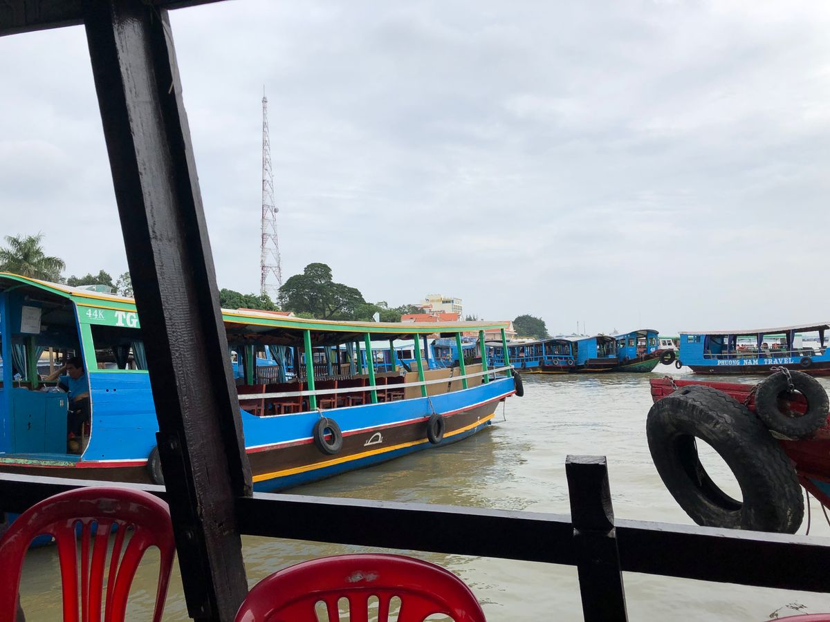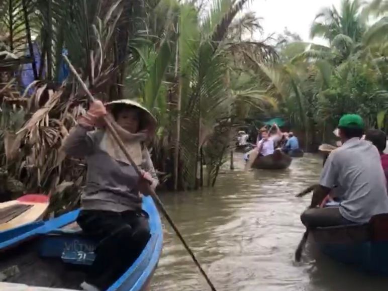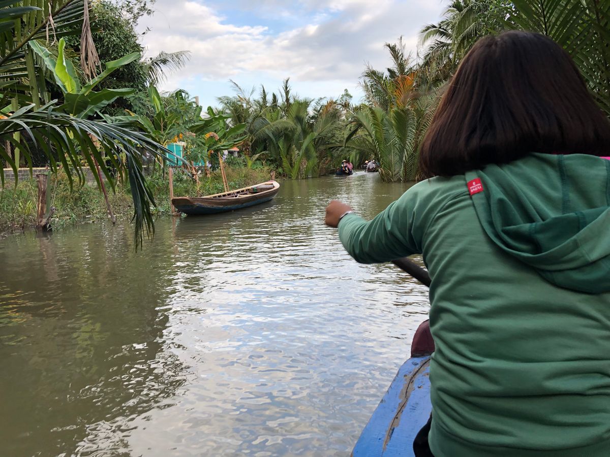 手漕ぎボートと小型のボートで、それぞれ10分程度メコン川をクルーズします。ホーチミンに来たら一度は記念に乗るのも良いと思います。あと無料Wi-Fiは時々、通信が切断されて利用できない時間がありました。