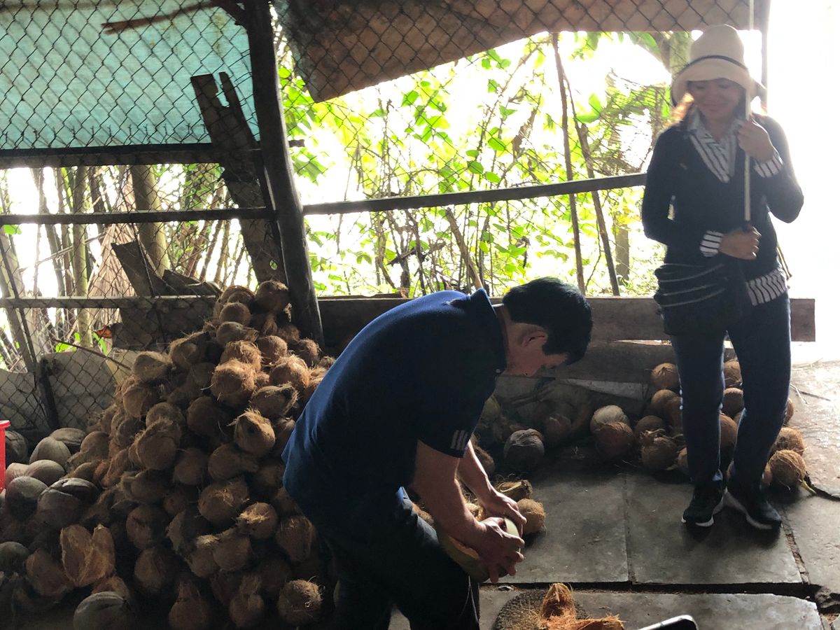 そこから歩いてココナッツ工場の様な場所に行って、説明を受ける。