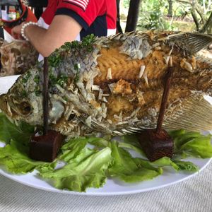 ランチの郷土料理はどれも美味しかったのですが、中でも揚げたてのエレファントフィッシュを生春巻きに包んで食べたものが美味しかったです。
