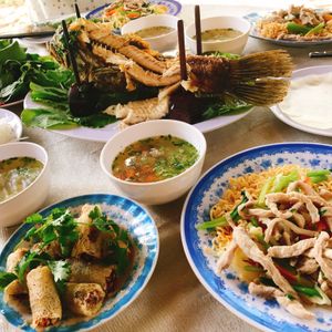 クチトンネルからメコン川への移動途中でレストランに立ち寄り昼食。とてもボリューミーでお腹いっぱいになりました。味も悪くはありません。