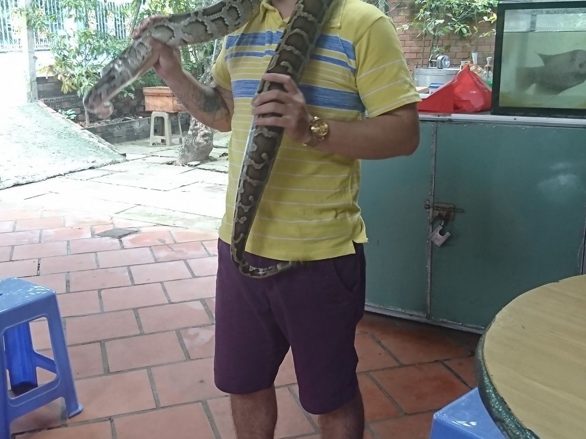ツアーは、まず船で島に渡り観光しながら進みます。蜂蜜農園でのニシキヘビ首巻き体験はみんなで盛り上がり、その後皆で打ち解けて楽しくお喋りしながらのツアーとなりました。