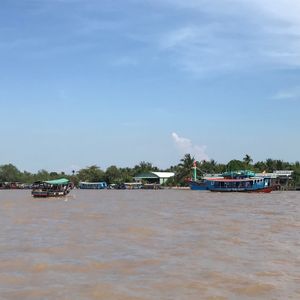 メコン川の手漕ぎボートは10分足らずで物足りない感じだが、昼食を食べに行く時の大型ボートには20〜30分乗れるので風に吹かれて気持ちよかった。