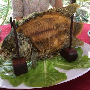メコン川クルーズは、ボートに乗っていくので、メコン川が身近に感じられました。昼食にでた、やきそば?らしきものは、インスタントで。ちょっとがっかりでしたが、エレファントフィッシュにびっくり!