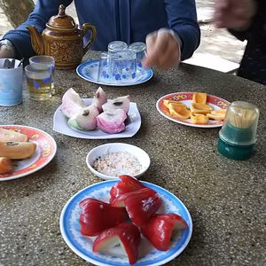 昼食後に移動した先で果物やお茶をいただきましたが、その時に現地の娘さん達の歌が始まりました。