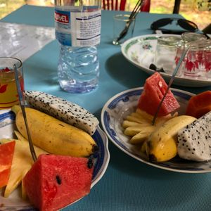 お茶は少し癖がありましたが私はおいしくいただきました。フルーツは見慣れないものもあり、また、贅沢かもしれませんが冷えていない状態だったので、私はあまりこのみではありませんでした。お茶を飲みながら地元の方に生演奏でを歌っていただきました。地元のローカル感がよかったです。