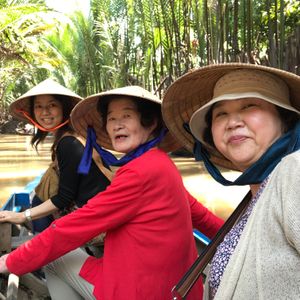 4日前の同社の半日市内観光も利用しましたが30ドル/人で、今回は昼食付き1日コースで40ドル/人が3月中割引で35ドル/人です。(もっとも市内観光はモニターツアーとのことで、2人目0ドルの予定ですが・・)ハチミツ農園や果樹園での試食、ココナツ工場見学やクルーズ船でのココナツジュース1人1個。昼食も食べ盛りの方には物足りないかもしれませんが、我々高齢世代には十分量でした。「手こぎボート」と「ジャングル」に心配もありましたが、ボートには漕ぎ手が2人付いていて乗ってるだけだし、川面も快適で特に服装も気にする必要はありませんでした。事前のピックアップ場所変更も、日本語対応でスムーズだったし、当日のガイドさんも堪能な日本語で、ベトナムの話をいろいろ聞かせてくれて、楽しいだけで無く勉強にもなりました。家族の都合で1ヶ月ほどのホーチミン滞在でしたが、楽しい想い出となり、大満足です。