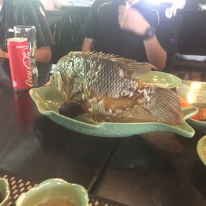 お昼ご飯も名物のお魚が食べれて、焼きそばみたいなものとスープと、たくさん食べれました!美味しかったです!