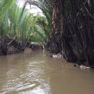 メインイベントのメコン川クルーズですが、現地の方が4人乗りの小さなボートを漕いで15分ほど下っていきました。優雅で静かな感じで気持ちよかったです。