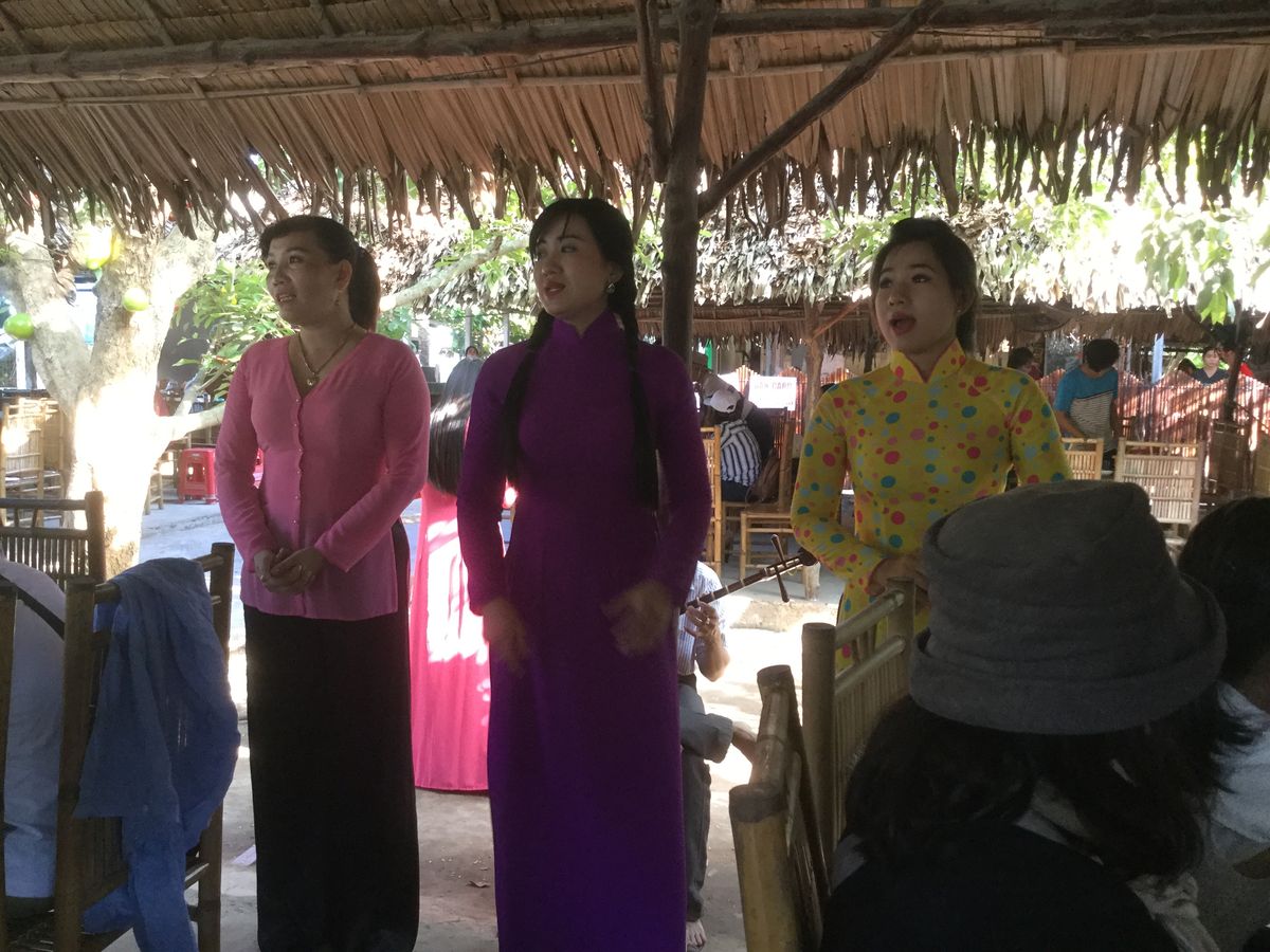 クルーズ暑かったけど、楽しい体験でした。果樹園では、フルーツの試食中に演奏と歌を聞きました。プロではなく近所の人が歌ってくれている。という感じでした。庭などの雰囲気は南国風でよかったです。チップは1万ベトナムドンしかしませんでした。