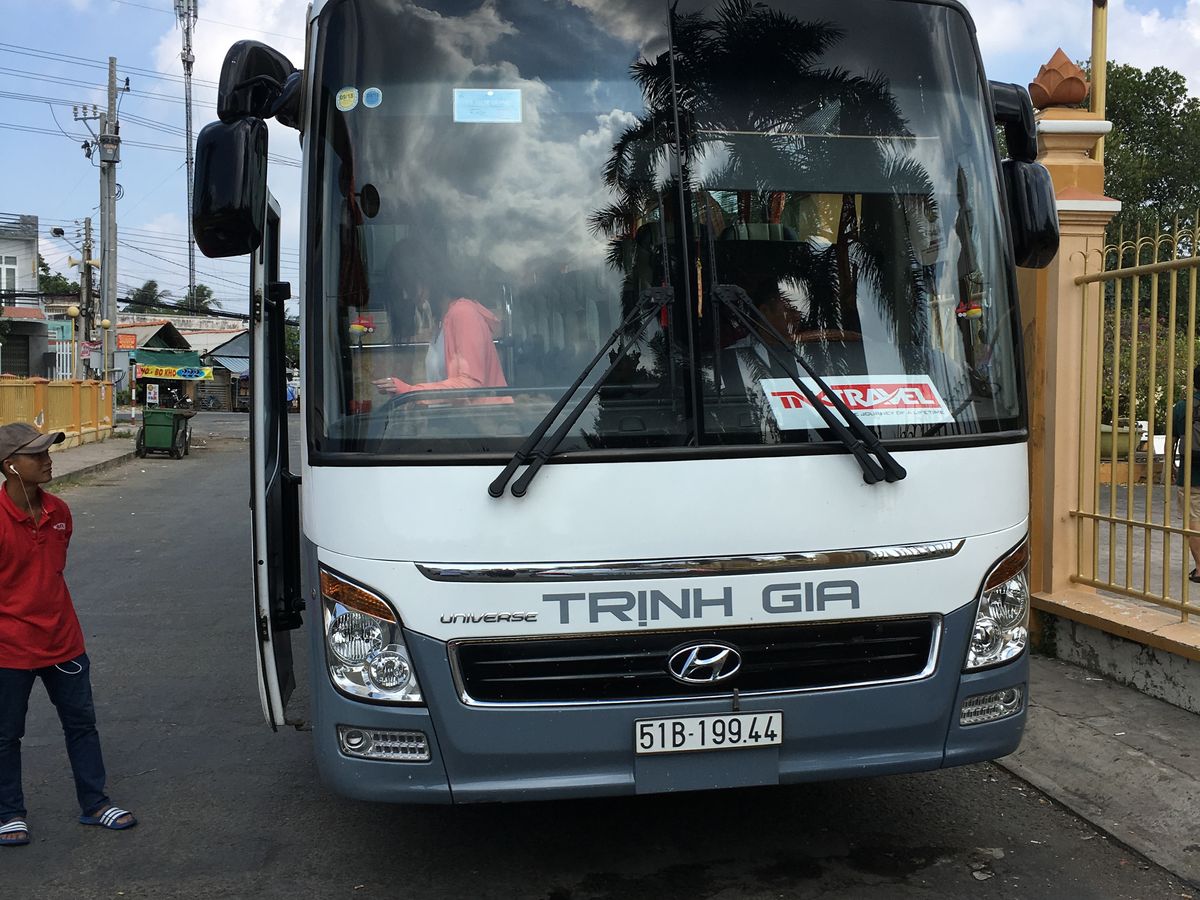 5月3日に参加しましたが、ガイドはベトナム人で丁寧な対応でした。催行約10時間中移動は約6時間ですが、古くて窮屈なマイクロバスに押し込まれ、GW中だったのでほぼ満員だったにもかかわらず、関西から来た親子連れ三人が、シートのリクライニング思いっ切り倒し、後方の席まで占領しており、皆窮屈な思いをしながらのツアーだった。途中メコン川クルーズに参加する殆どのバスが集まるレストランに寄ったが、このツアーのバスよりチープなバスはいなかった。