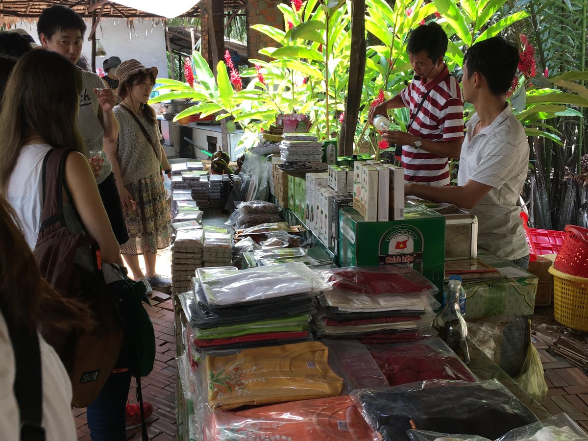 メコン川デルタクルーズの途中に、蜂蜜だのココナッツだのたくさんのお店に連れて行ってくれます。私たちは楽しい雰囲気に飲まれて調子に乗り、そこで結構な量をお買い物してしまいましたが、市内のスーパーなどに似たような商品が格安でたくさん売ってます…!(笑)記念に、程度のお買い物で充分です。