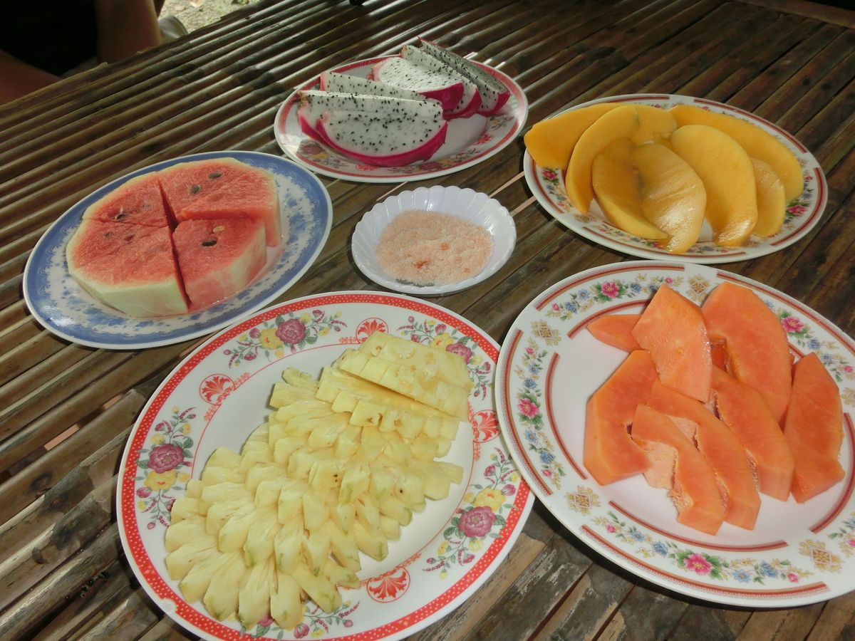 島内では、フルーツ、お茶、はちみつ、ココナッツキャンディの試食ができ、休憩も十分にできとても楽に回ることができました。