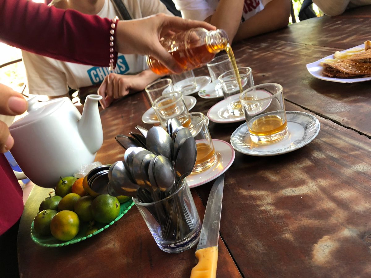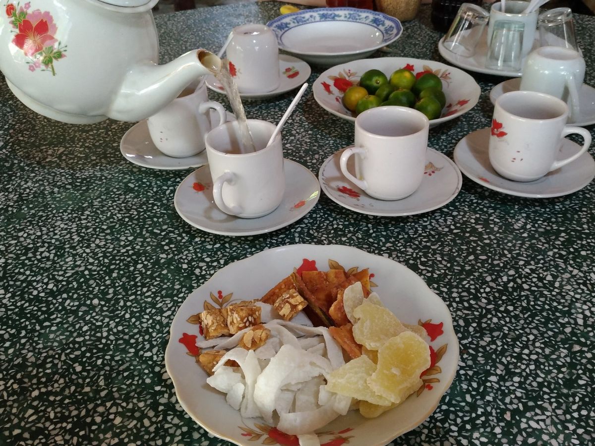 ロイヤルゼリーの強引な押売りはありませんでした。伝統音楽の演奏会ではチップをあげる方もちらほら。ココナッツキャンディが30,000ドン(150円)だったので購入。レストランで飲み物(23,000ドン〜)を注文する方もいましたが、持参のお茶でも大丈夫でした。