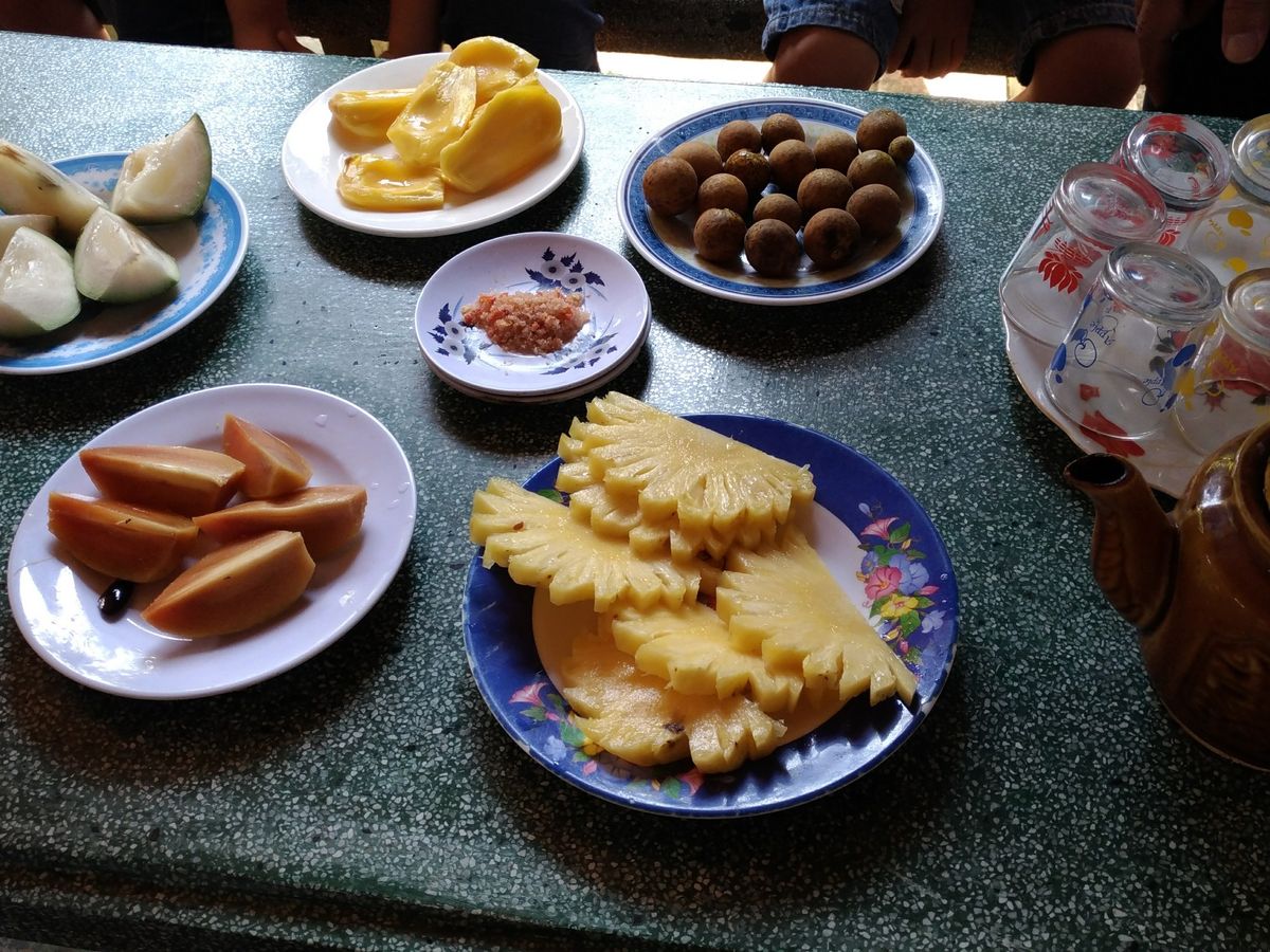 盛りだくさんのフルーツ、出来立てのココナッツキャンディー、今まで食べた中で一番おいしいと思った蜂蜜の試食!お昼前に満腹になりそうでした。