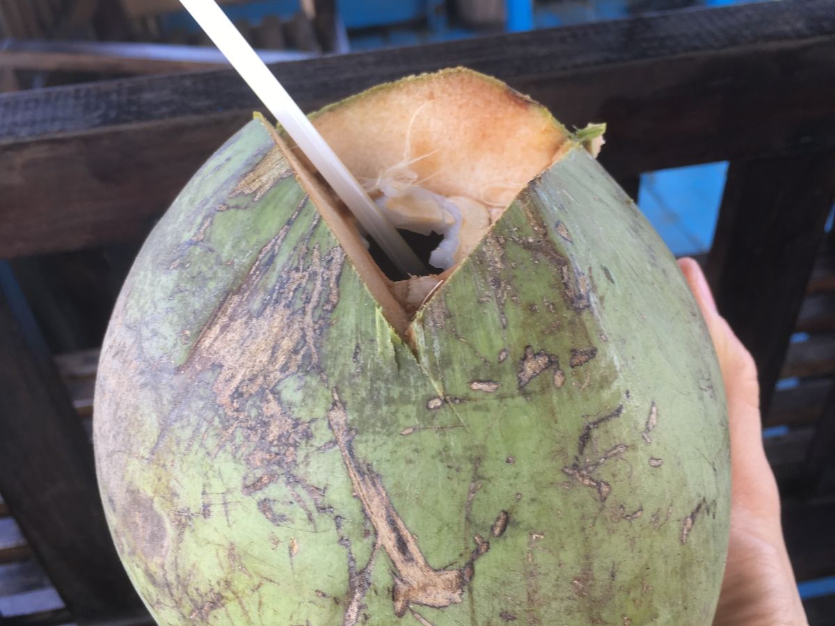 もちろん、ココナッツに直接ストローが刺さって、ゴクゴク。