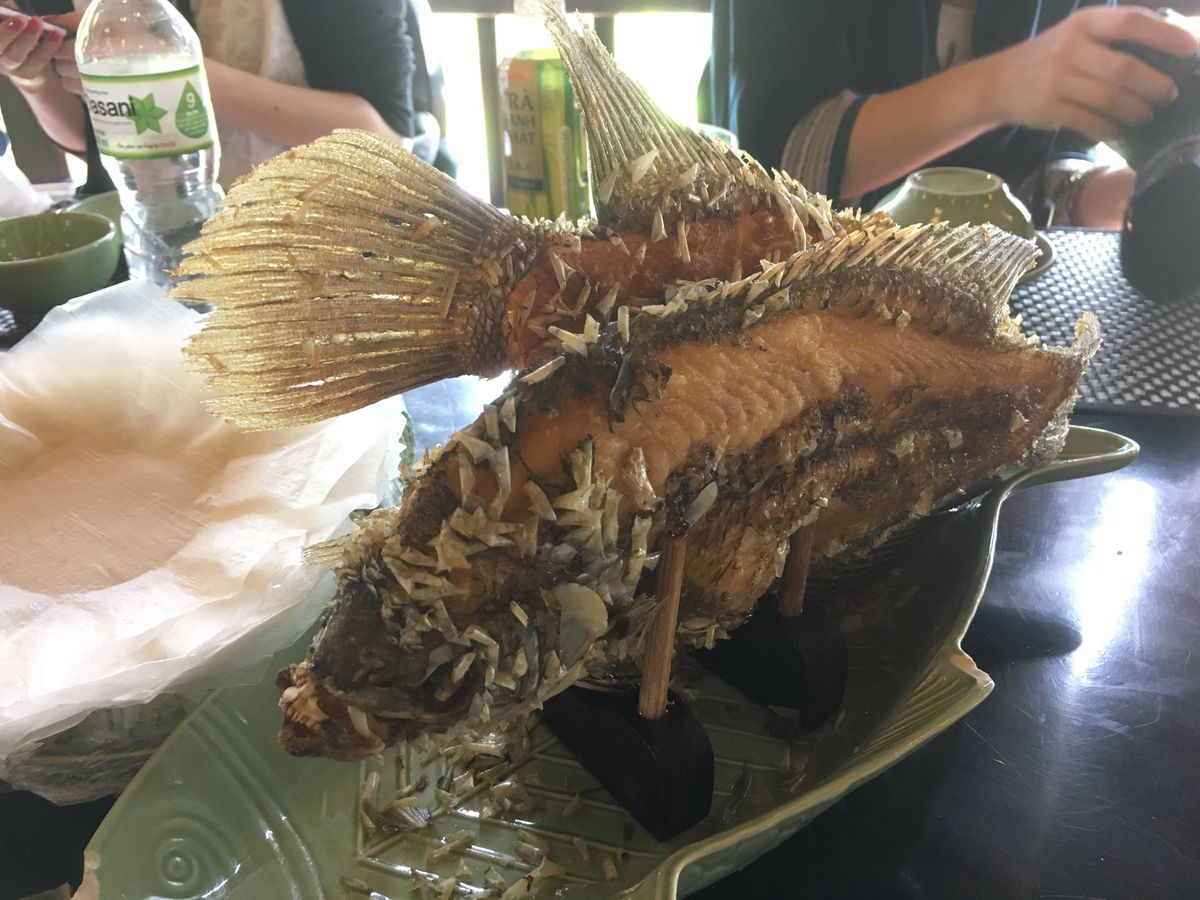 特に、メコン川で有名なエレファントフィッシュの素揚げが見たくて参加しました。