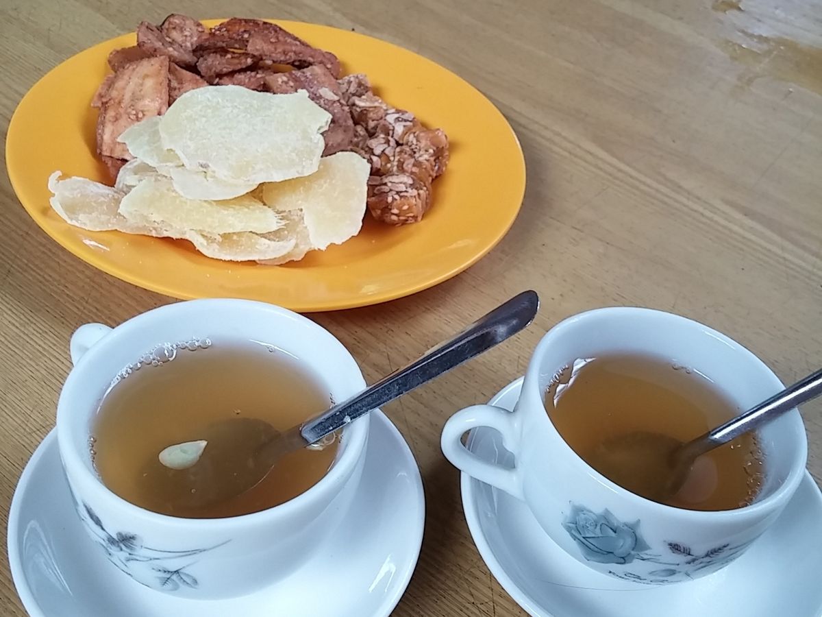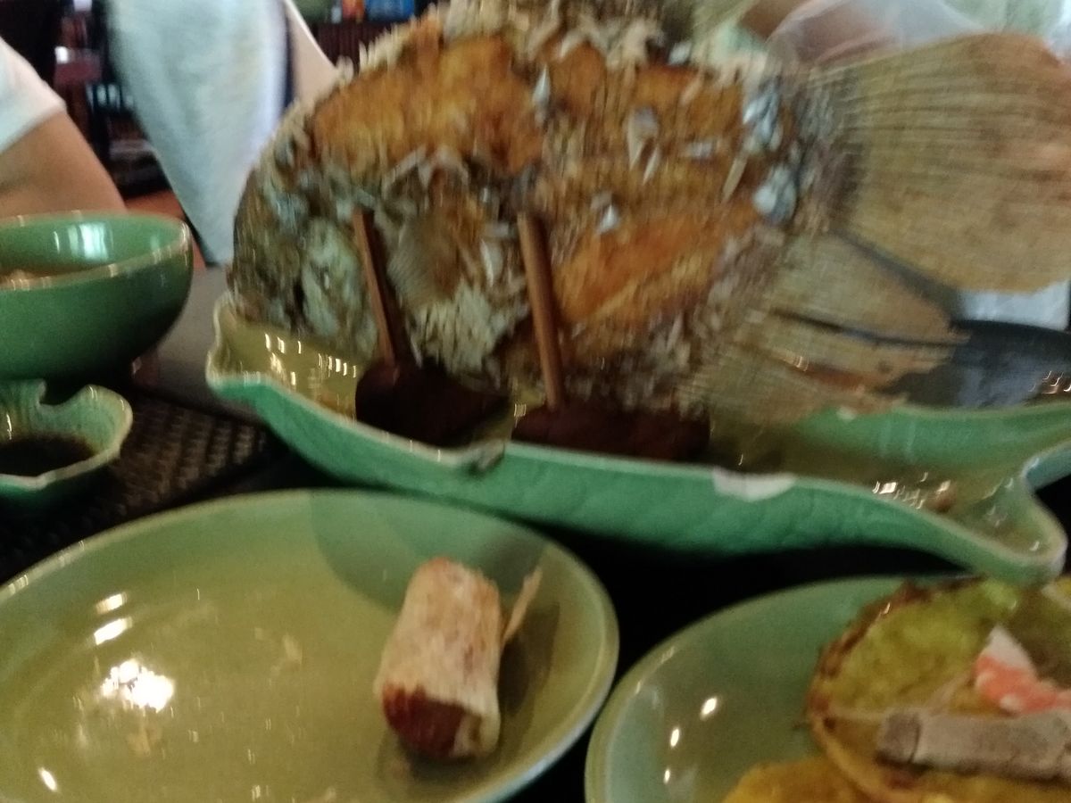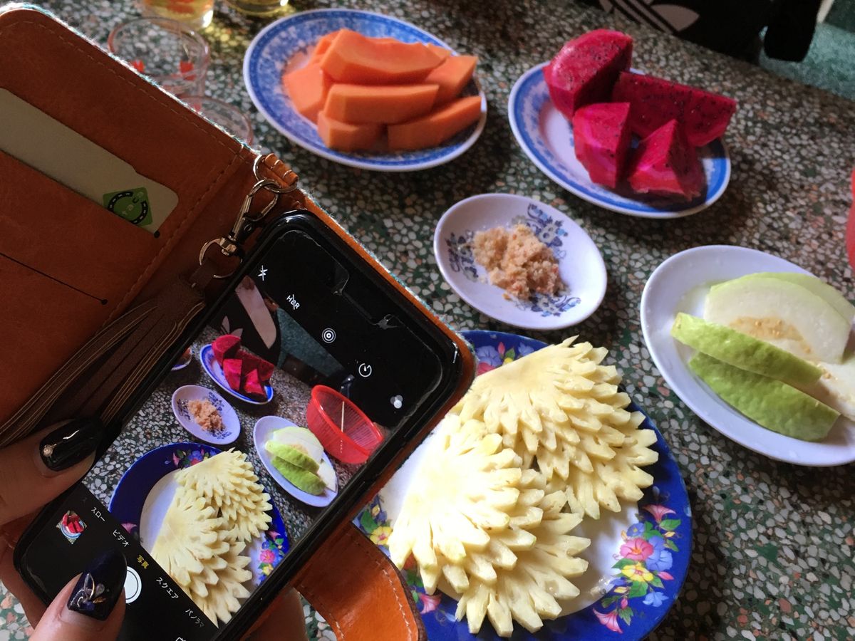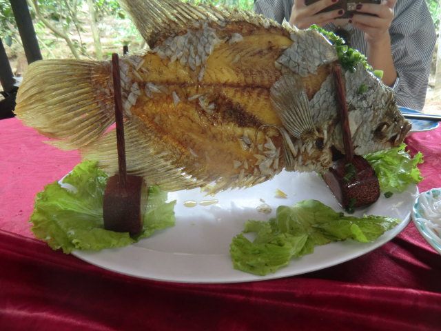 お昼はエレファントフィッシュという象の耳のような形をした魚をまいた春巻きやライスボウルといういももちのようなもの、フォー、ぜんざいのようなチェーが出てきました。地域によって味がちがうそうですが全体的に甘めの味付けでした!