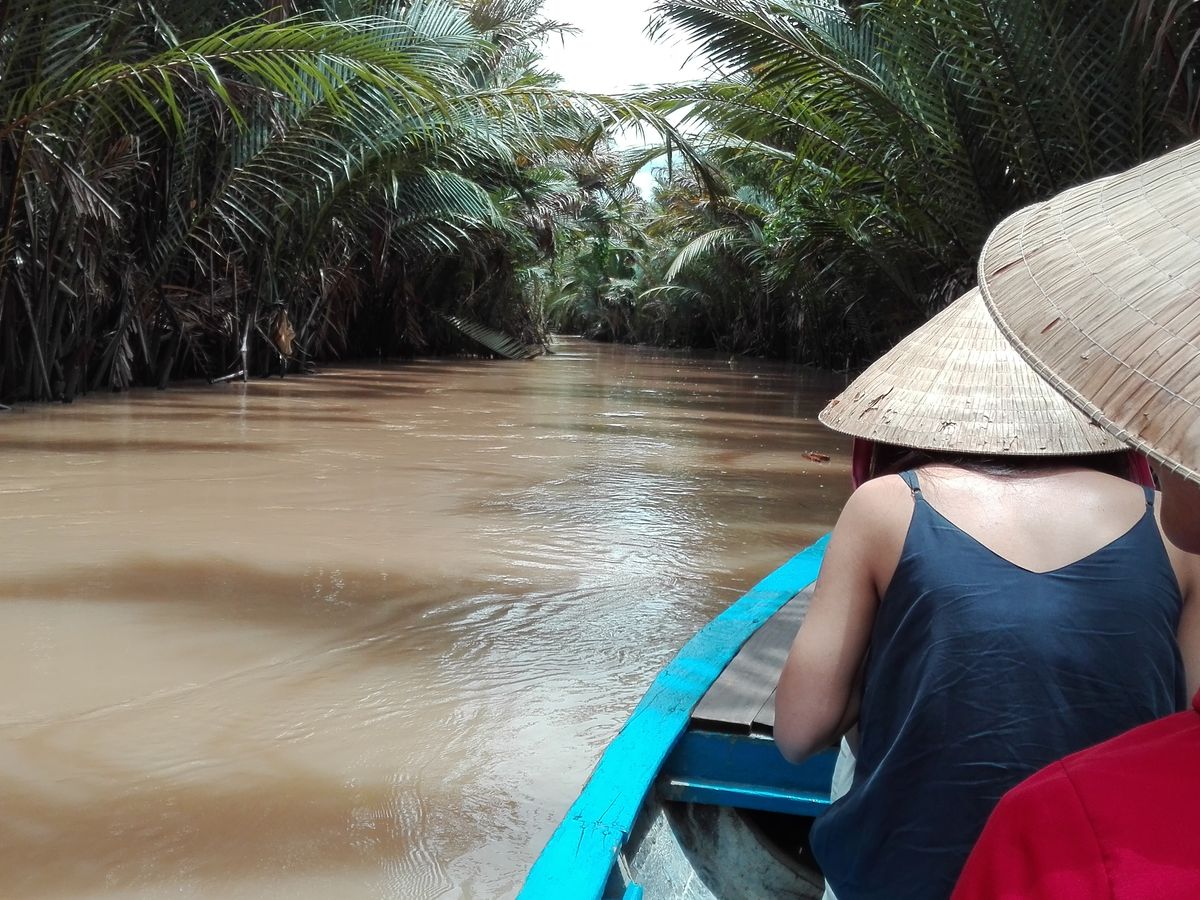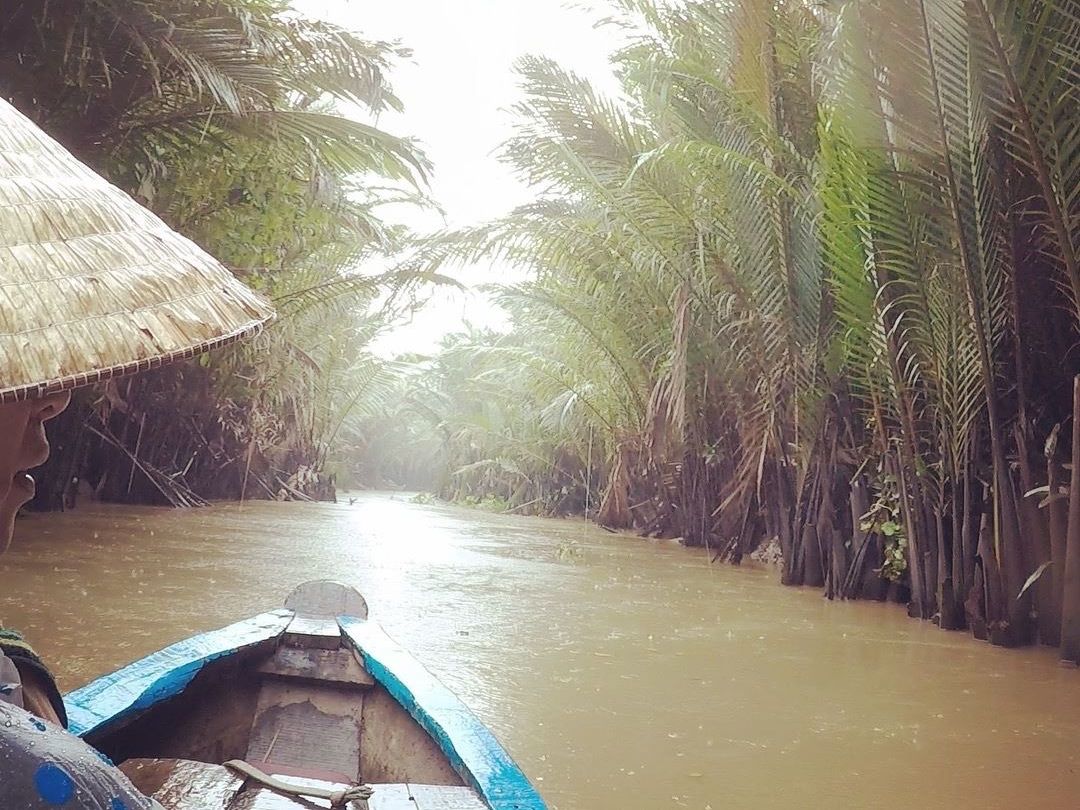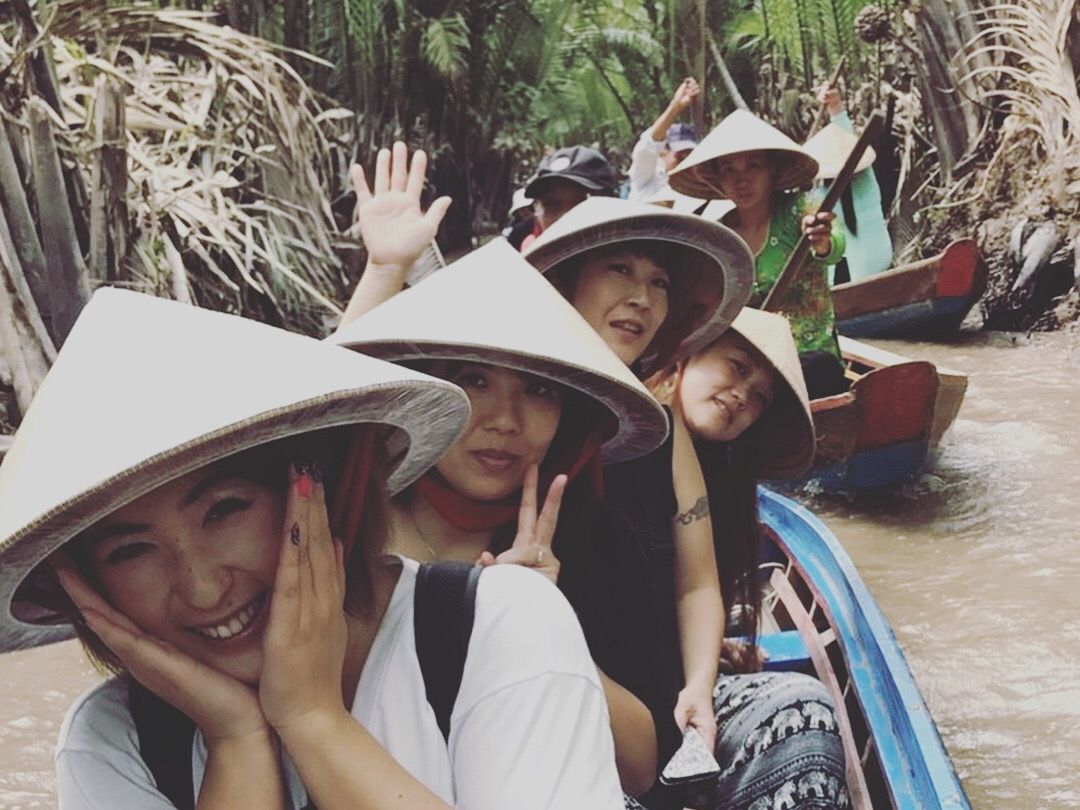 最初はミトーに向かいました。現地の美味しい蜂蜜やお菓子などを味わったり、ニシキヘビを肩にかけて撮影できる時間があり、貴重な経験でした!また、ココナッツキャンディを作る工程を見学することもできます。そしてメインのメコン川デルタクルーズは最高でした!傘帽子を被っての川下りは雰囲気満点でよかったです!ただ凄い暑いので日焼け止めは必須です、、!