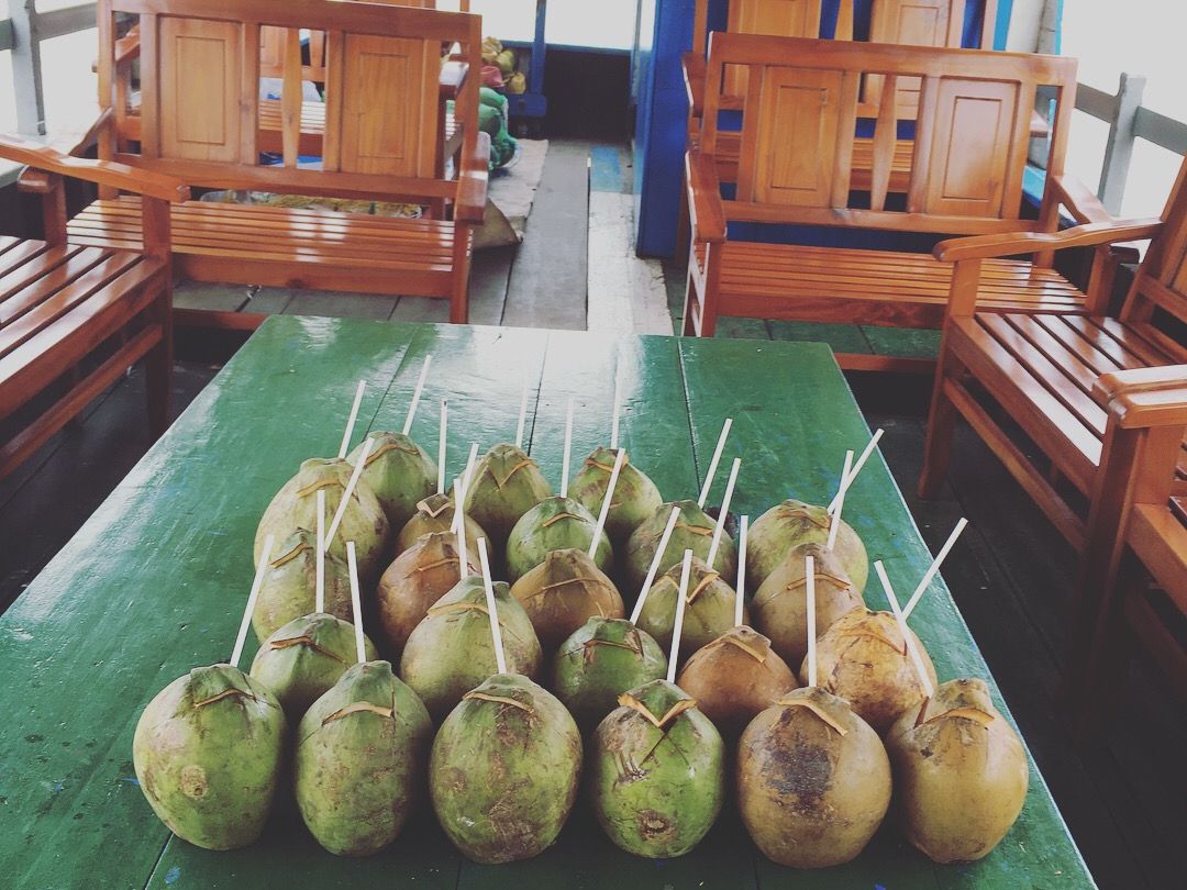 ボートで島へ移動し、住民の方のお家の横を通って、養蜂の見学&蜂蜜試食(とても美味)、アナコンダとふれあい、お土産屋さん、ココナッツキャンディー工場(という名のオープンな小屋。)の見学、フルーツのサービス、歌観賞、と盛りだくさんの後、