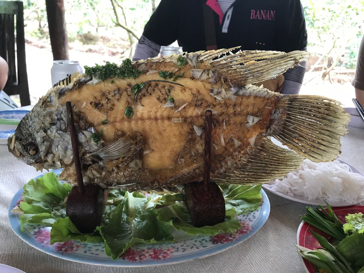 少し雨模様でしたが、メインのメコン川クルーズでは天気も良く楽しかったです。途中立ち寄りの、お寺も写真をいっぱい撮りながら散策出来た。滞在時間も長すぎず丁度良かったと思います。昼食の象耳魚もおいしかったし。ココナッツ工場やはちみつ茶も良かった。