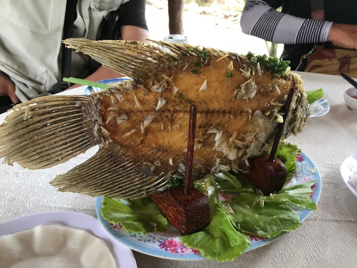 それからエレファントフィッシュ(象耳魚)の丸揚げ料理。