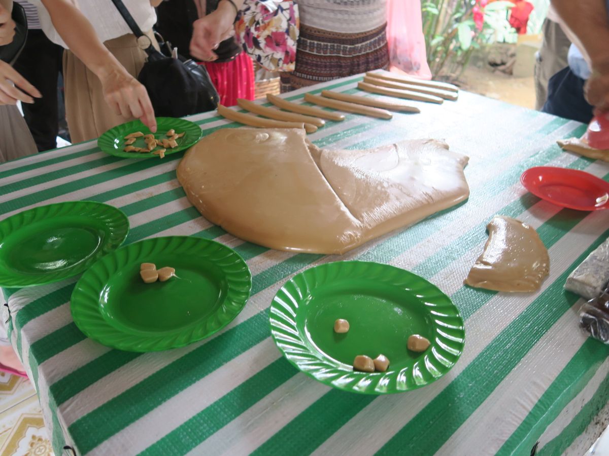 ココナッツキャンディー工場では、試食や作り方の説明を受けました。味はまーまー。作ってる人も食べながら作ってた。w