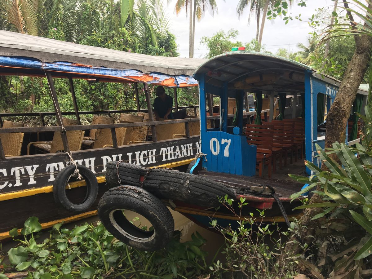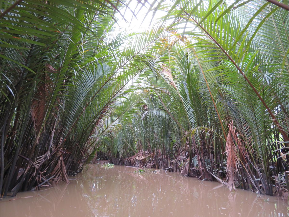 ようやく船着き場にたどり着き、クルーズ開始。島内の舟運のための水路だったという川幅はかなり狭く、鬱蒼としたジャングルをかきわけるように進みます。特にハイライトもありませんが、ゆっくりと流れる川の中をのんびりクルーズできました。下船後、ホーチミン市内のホテルへ戻り終了。