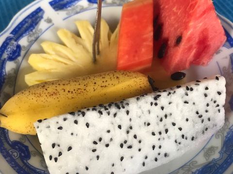 ミトーではハチミツ茶や季節のフルーツを食べ、満足。