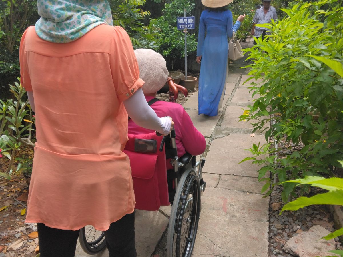 足が悪い母を連れての旅でしたので、貸切チャーターにして大正解でした。ガイドさんは、知識の多さはもちろん、母の足の状態、車椅子のことなど、気配りも十分で、とても助かりました。メコン川の小舟にも私たちと一緒に車椅子(折畳式)も載せていただけて助かりました。ランチの、ライスペーパーで包んで食べる象耳魚は、意外にもとても美味しかったです。
