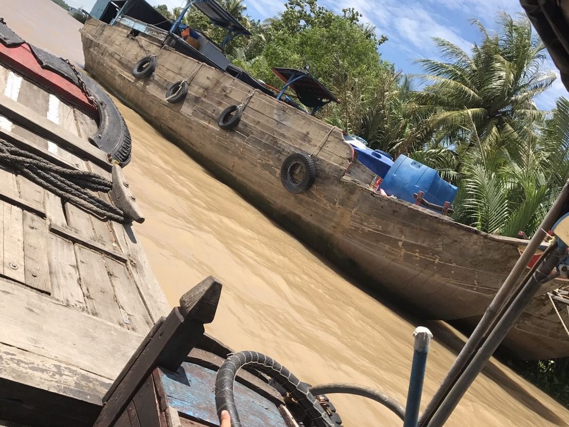 なによりもメコン川クルーズを体験したくて参加しました。小さなボートでの約20分のクルーズでは、自分でこぐ体験もでき、楽しく過ごすことが出来ました。また、このボートに乗る前には、養蜂場でベトナム特産の竜眼の花のハチミツとロイヤルゼリー、またココナッツのキャラメルなどのお土産も購入できました。 市内への移動時には、道がすぐ川のようになる南国特有の本当に激しいスコール、また、毎日のオートバイの凄まじい交通渋滞なども経験できました。