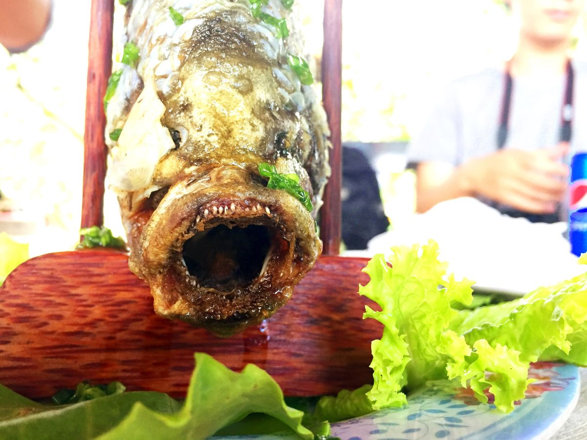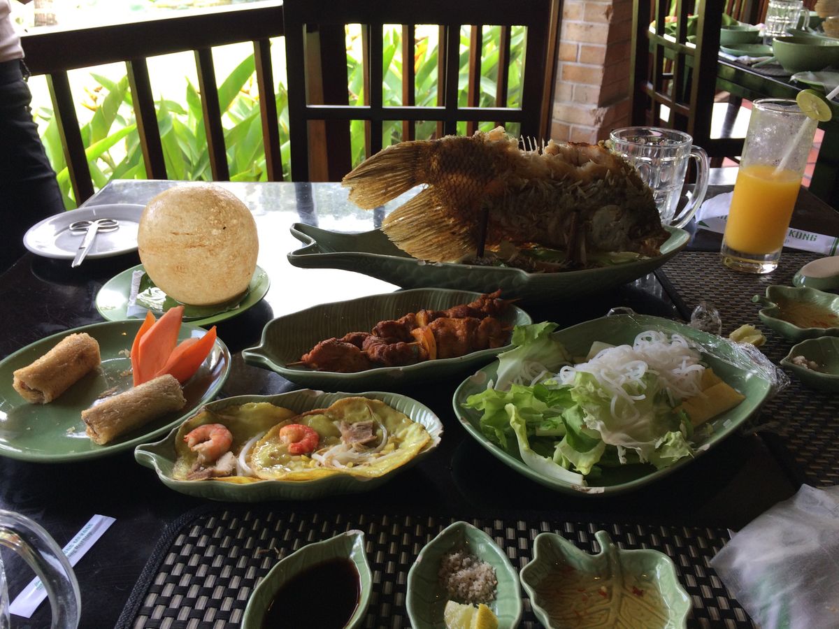 メコン川を後にし、クチトンネルに向かう道中に名物のエレファントフィッシュをランチに食べました。食べるまでは見た目の強烈さにびっくりしましたが口にしてみるととても食べやすく美味しかったです。他の料理も絶品でした。